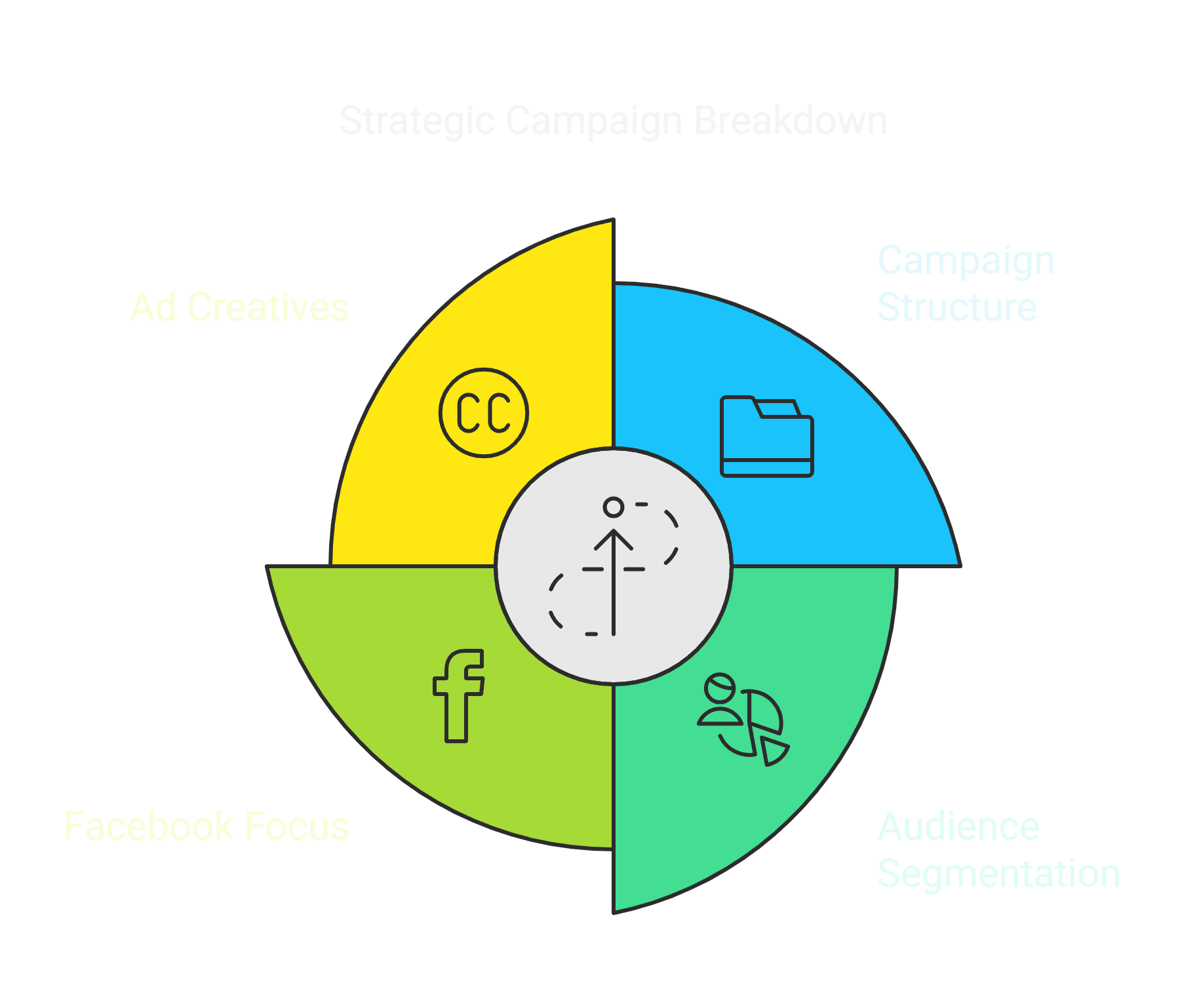 - Segmented audiences: cold, warm, lookalikes, email subscribers
