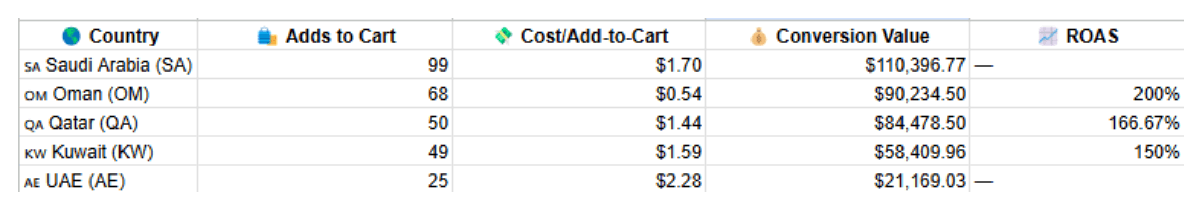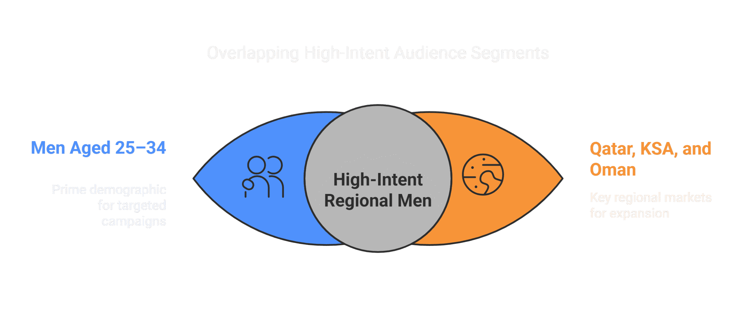 - Identified high-intent segments: Men aged 25–34, primarily in Qatar, KSA, and Oman